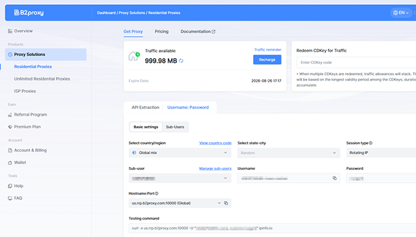 B2Proxy 提供干净、高可用、高匿名的住宅 IP,非常适合火豹浏览器用户进行跨境电商多店铺环境配置、账号防关联与稳定运营。