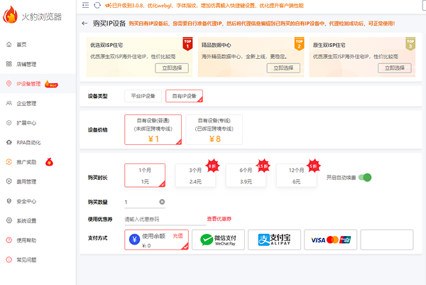 (三)在火豹浏览器上购买自有设备 IP 权限