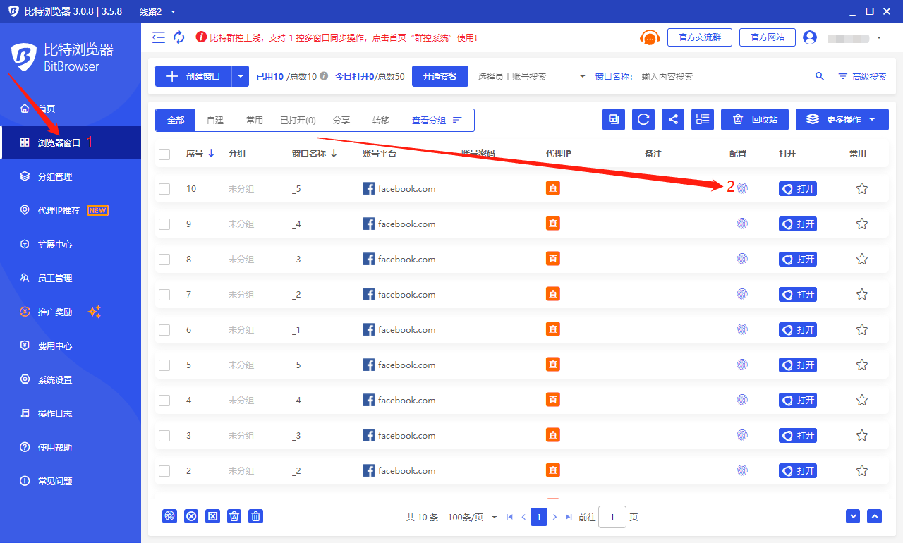 4.进入“浏览器窗口”,点击配置进入到“常用设置”。